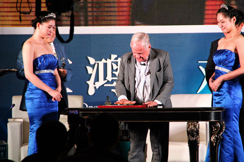 眾所周知,羅杰斯先生旅行的足跡遍布全球各國。而這次來鴻園,他不僅給中原企業家、投資者留下了難能可貴的財富智慧,更為鴻園留下了他點石成金的手印。羅杰斯先生高舉自己的手模,讓這一輝煌盛世永久性的被保留、被銘記。